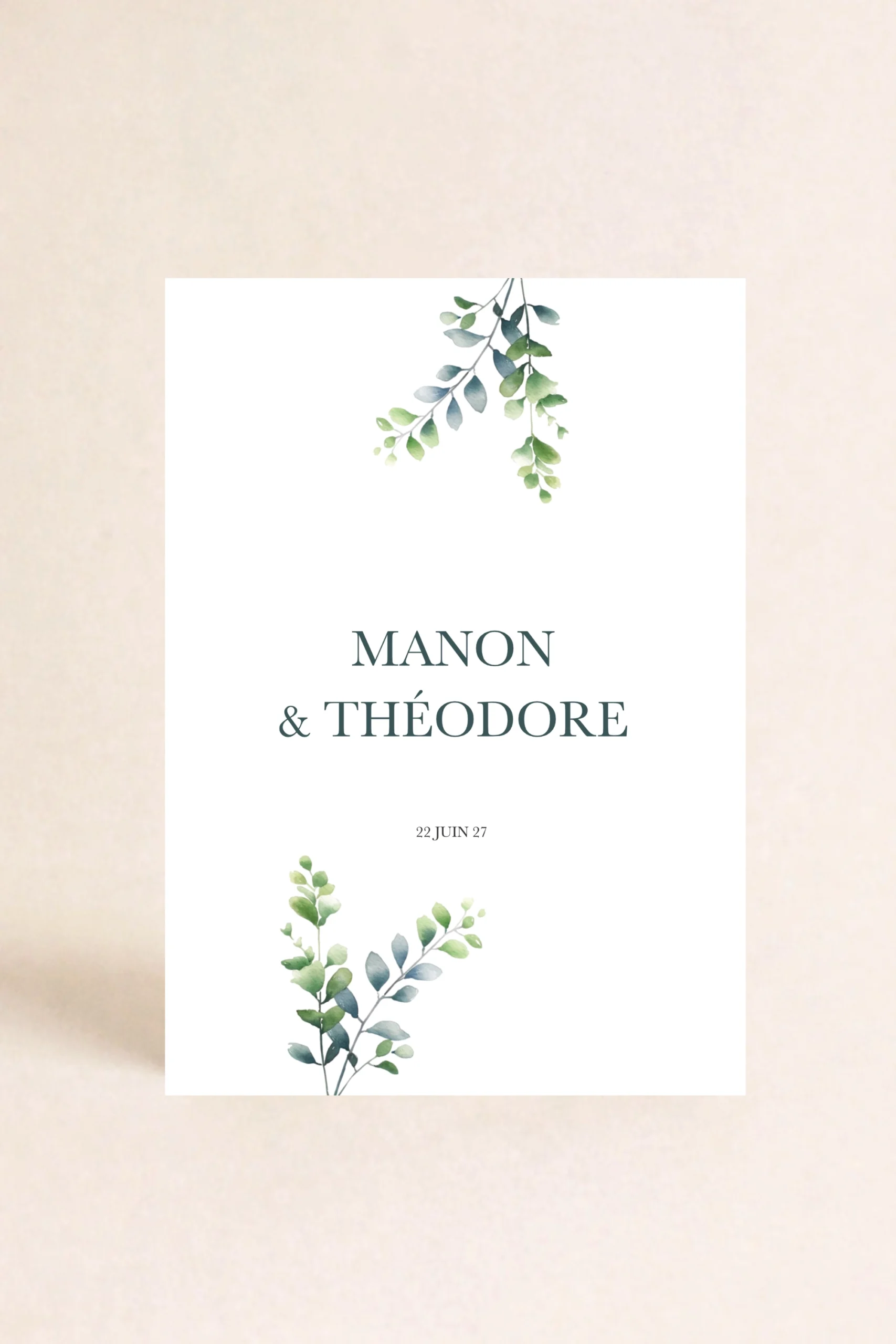 Faites raisonner la joie dans votre annonce avec ce faire-part aux feuilles de Laurier. Son design en encre « verte » est à la fois simple et raffiné.