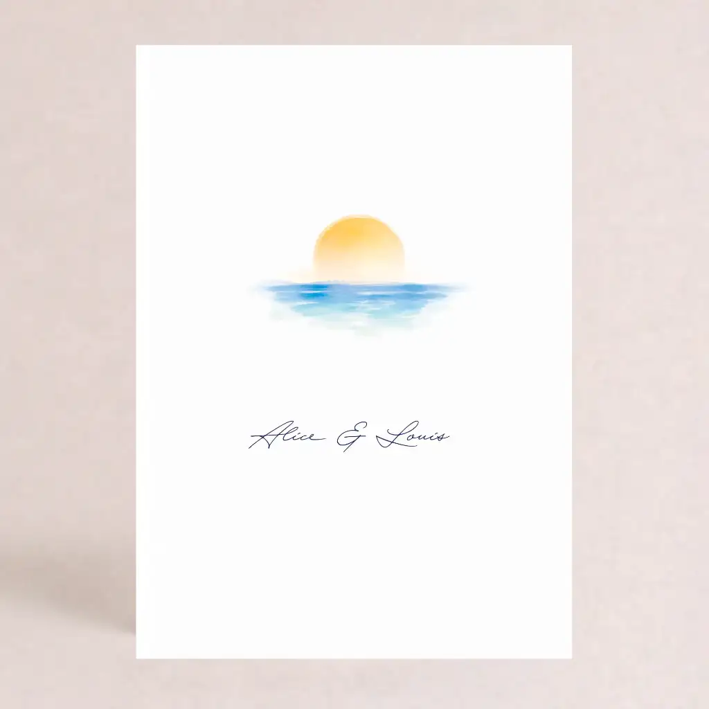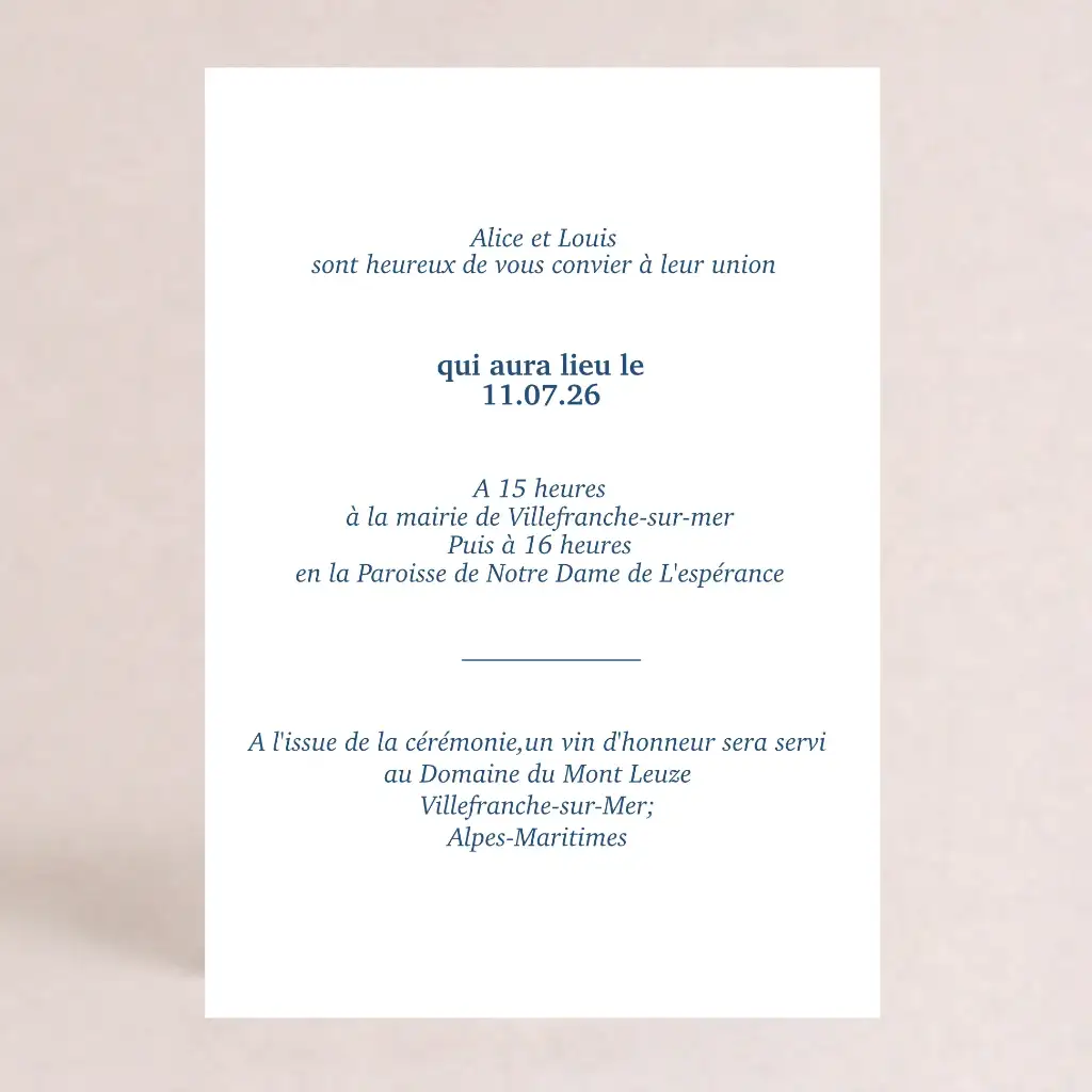 Faire-part double volet caractérisé par une découpe classique. L'ensemble est personnalisable avec les détails de votre évènement.